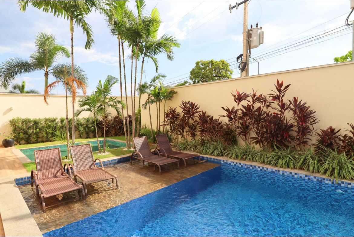 1 suíte com cama queen, 1 quarto com duas camas de solteiro e três colchões extras de tamanho solteiro, ambientes climatizados, máquina de lavar e secar roupas, ferro de passar, secador de cabelo, cooktop, microondas, forno, filtro de água potável, sanduicheira, cafeteira, liquidificador e demais itens de cozinha, roupa de cama e banho inclusas, Tv 60' home theater JBL, Sofá retrátil elétrico, adaptado p/ crianças com tela de proteção